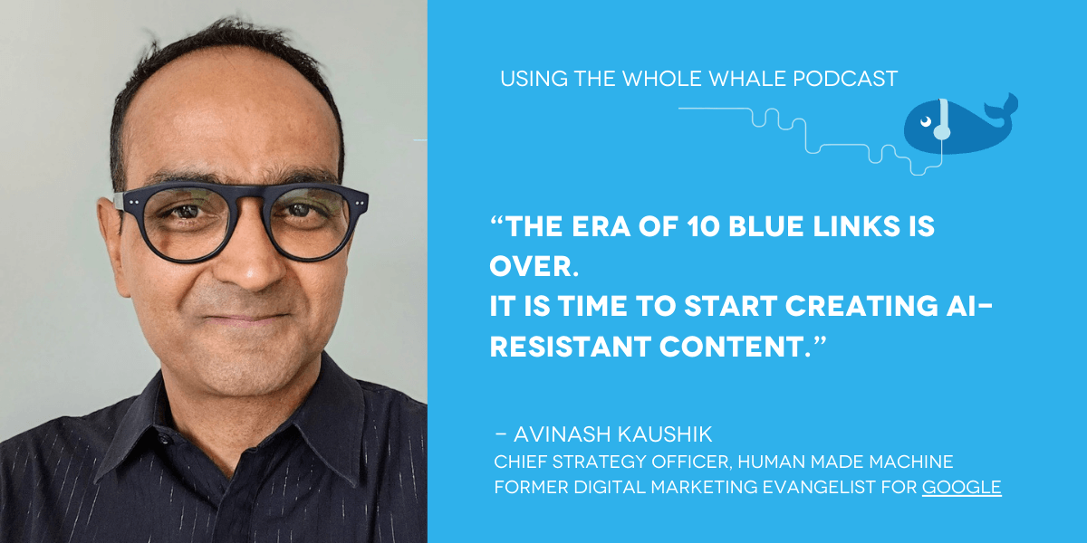 Avinash Kaushik: [00:00:00] So traffic’s gonna go down. So if you’re a business, you’re a nonprofit, how. Do you deal with the fact that you’re gonna lose a lot of traffic that you get from a search engine? Today, when all of humanity moves to the answer Engine W world, only about two or 3% of the people are doing it.