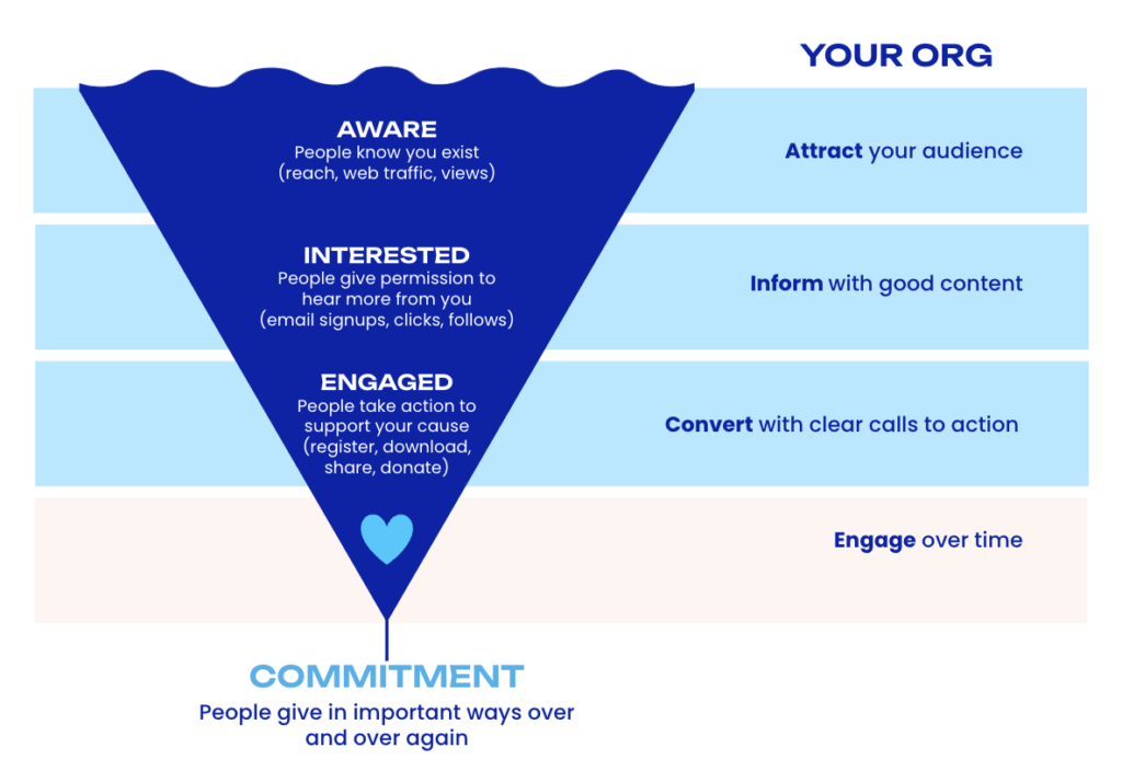Let’s be real: your supporters are at different stages of readiness to give. A single “Donate Now” button won’t cut it. When you plan content, calls to action, and campaigns for each stage of the funnel, you: