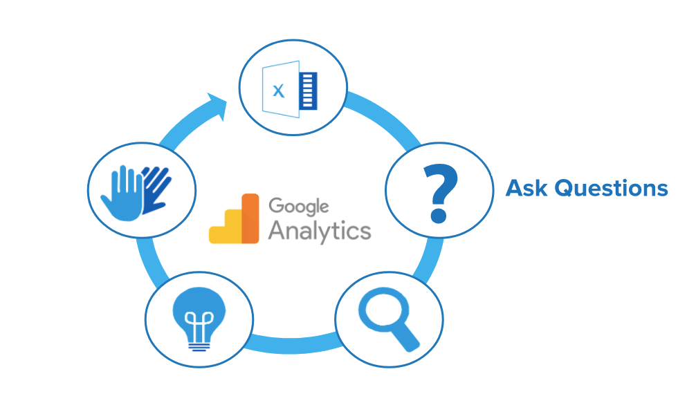 When looking at data, follow the cycle of gathering information, asking questions, analyzing insights, and acting on those insights — and repeating. With this process, we can use data and operationalize it in order to constantly optimize our digital strategy. To start, ask your team, “What are you trying to figure out?” Then, use this approach (along with awesome tools like Google Analytics) to find the answer.
