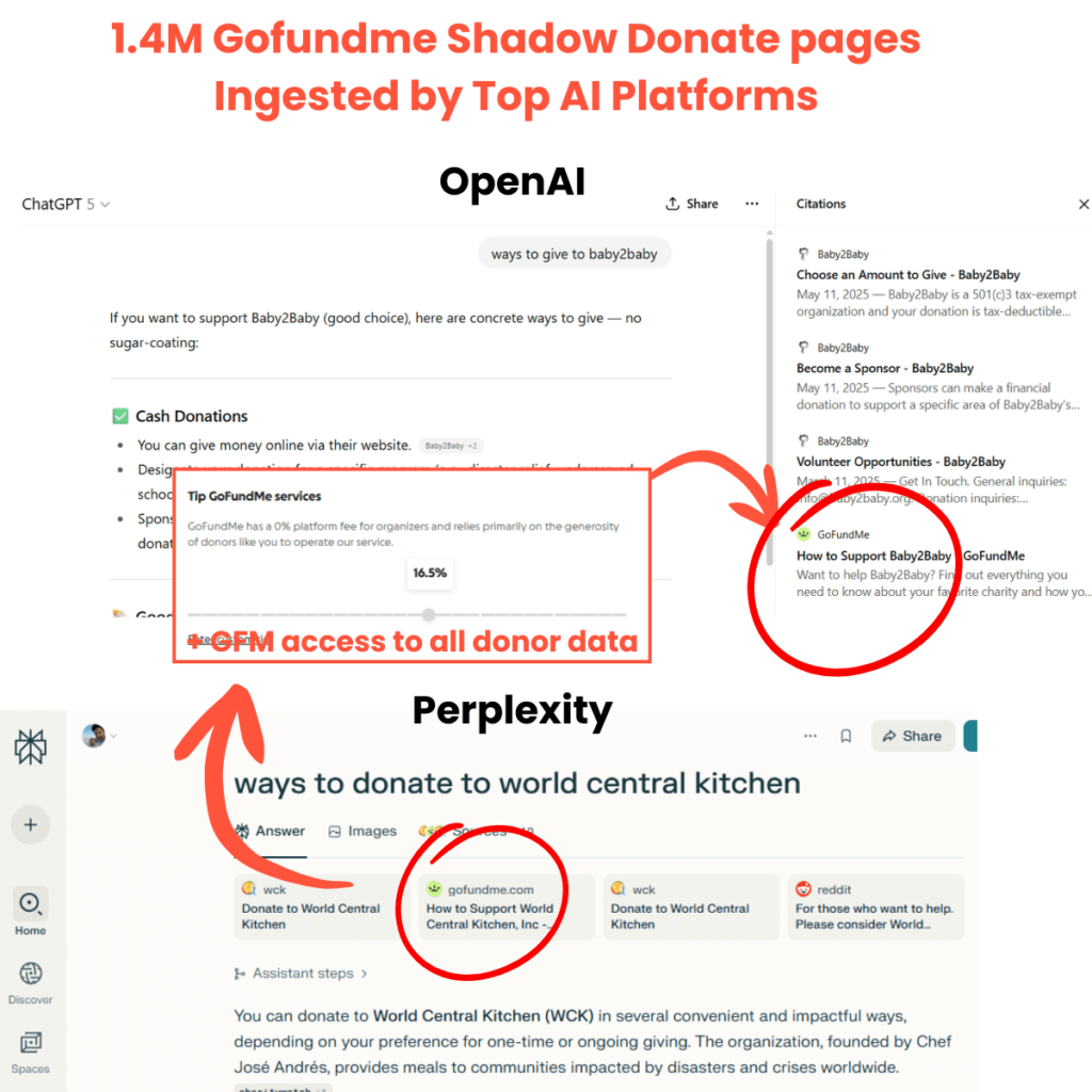 Example of what it looks like when AI ingests Shadow Donation Pages: